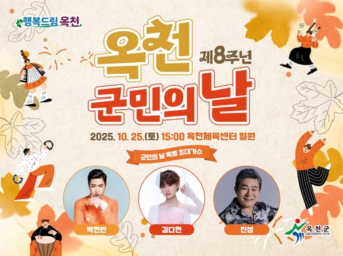 옥천군이 '옥천군민의 날'을 맞아 오는 10월 25일 15시에 옥천체육센터에서 기념식과 함께 축하공연 등 다양한 행사를 개최한다.