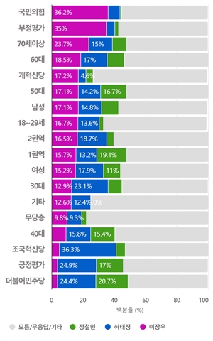 ㆍ◈「이장우」국민의힘, 70세이상, 60대, 개혁신당, 남성, 50대 순으로 높아